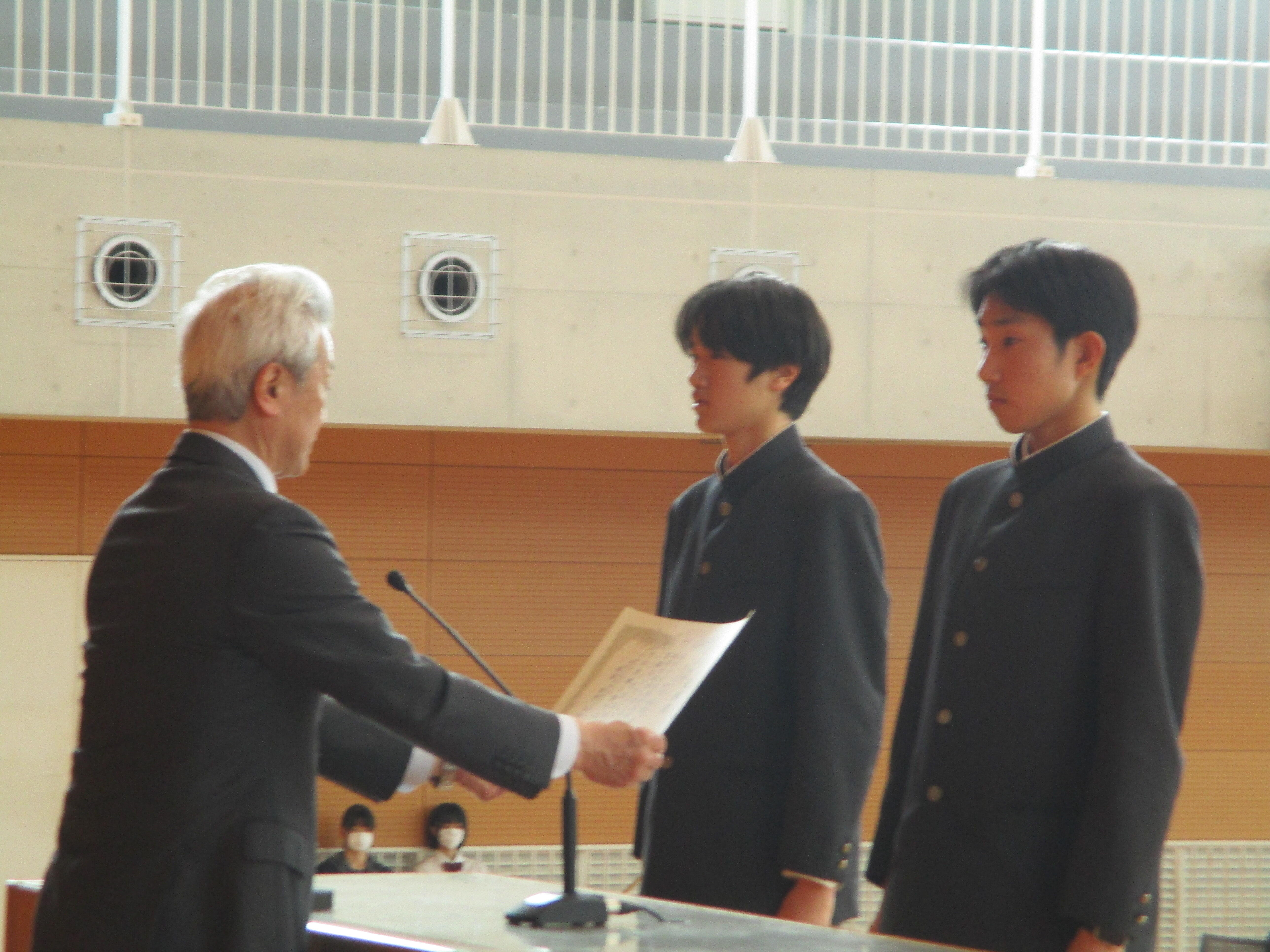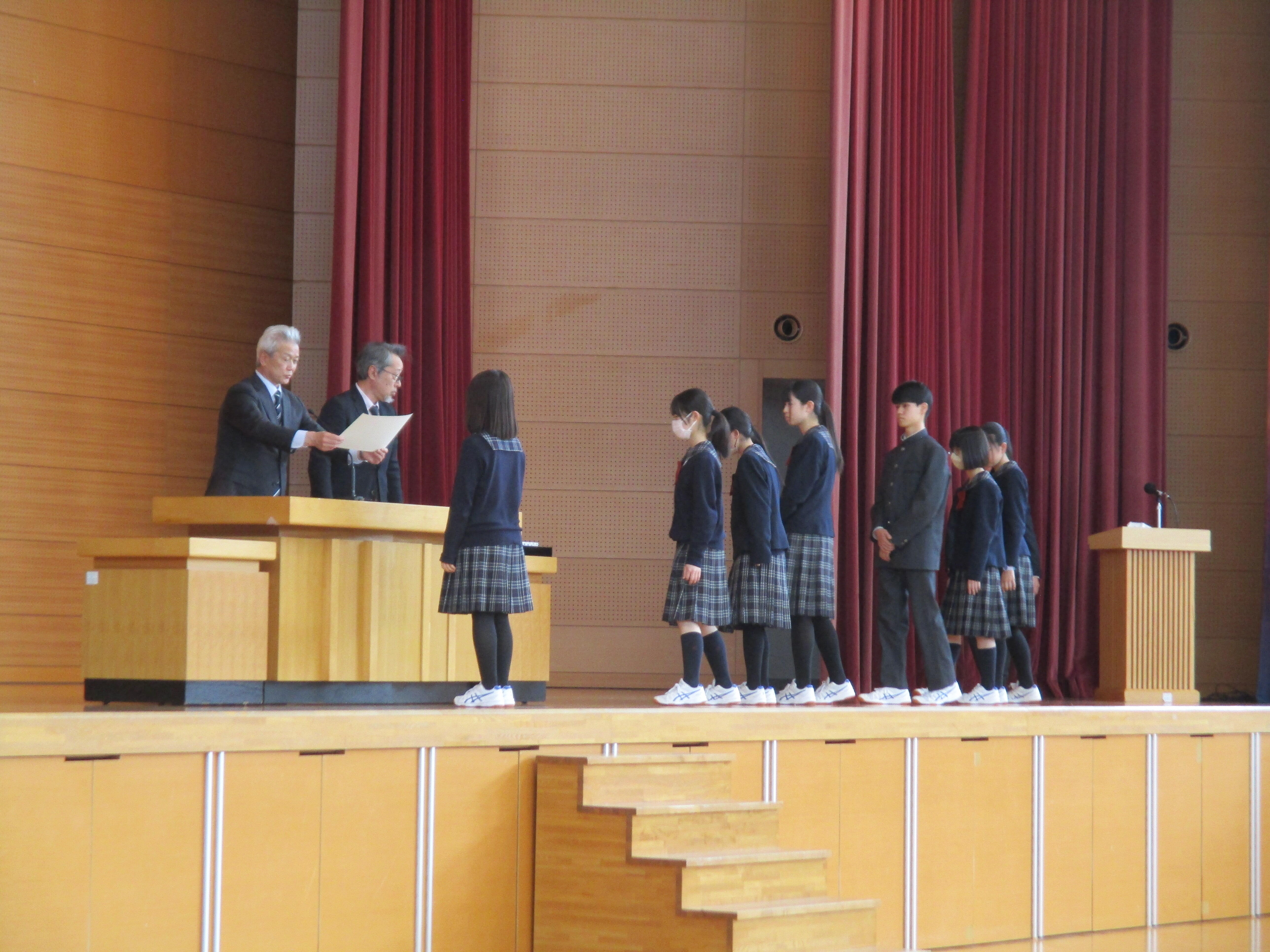HOME スクールレポート 中学3年生 成績優秀者表彰式 スクールレポート 中学3年生 成績優秀者表彰式 中学校2024(令和6)年3月11日 3月11日(月)の午後に中学3年生の成績優秀者表彰式が行われました。成績優秀者10名に賞状と記念品が贈られ、また生徒会功労賞として前生徒会役員だった2名には感謝状とメダルが贈られました。12日(火)は修了式(卒業式)が行われます。大濠中生として3年間過ごしてきた生徒たちは今新たなステージへ歩み出そうとしています。ぜひ自分が思い描く素晴らしい未来へ向かって進んで行ってくれることを願っています。 戻る