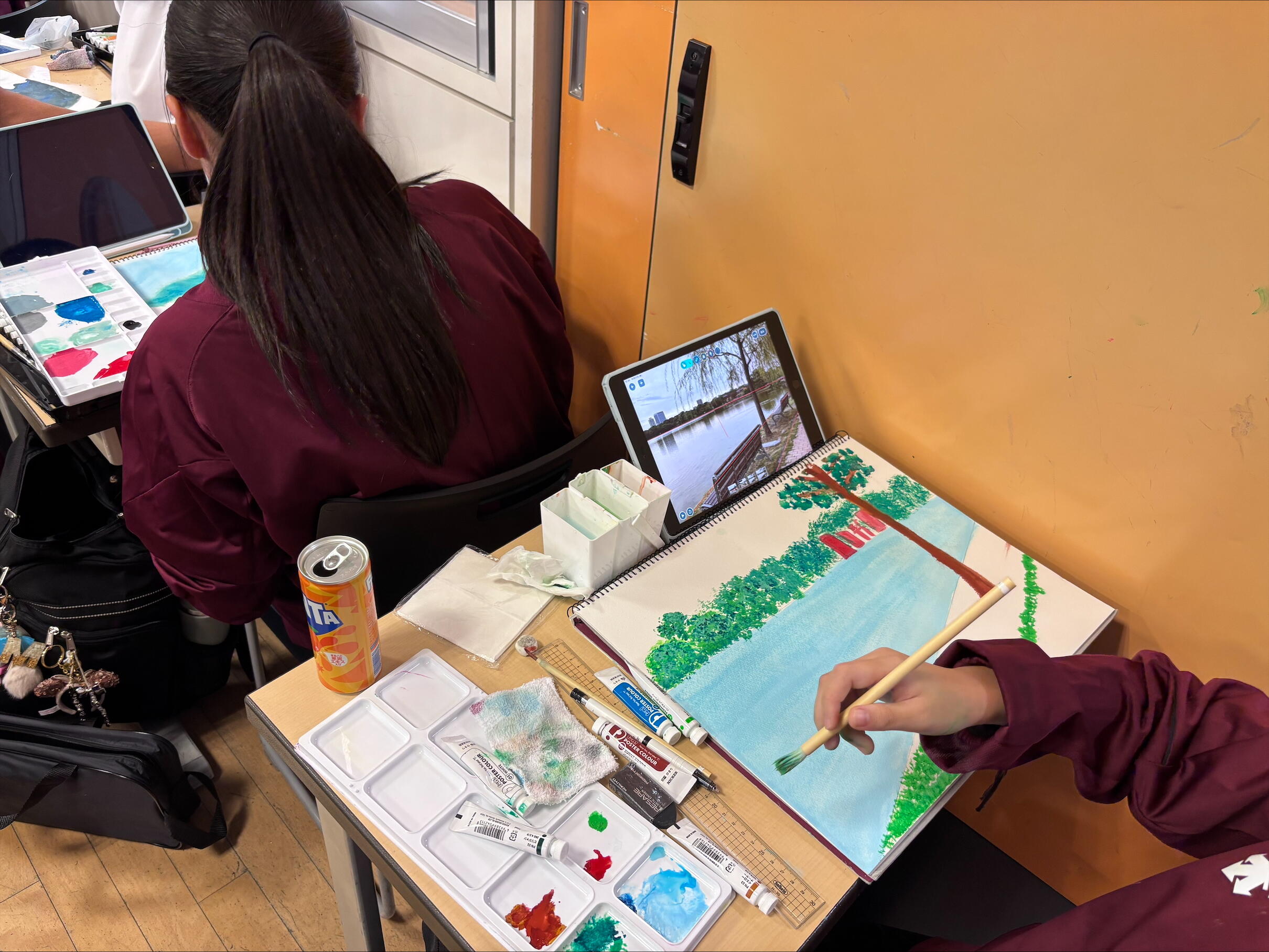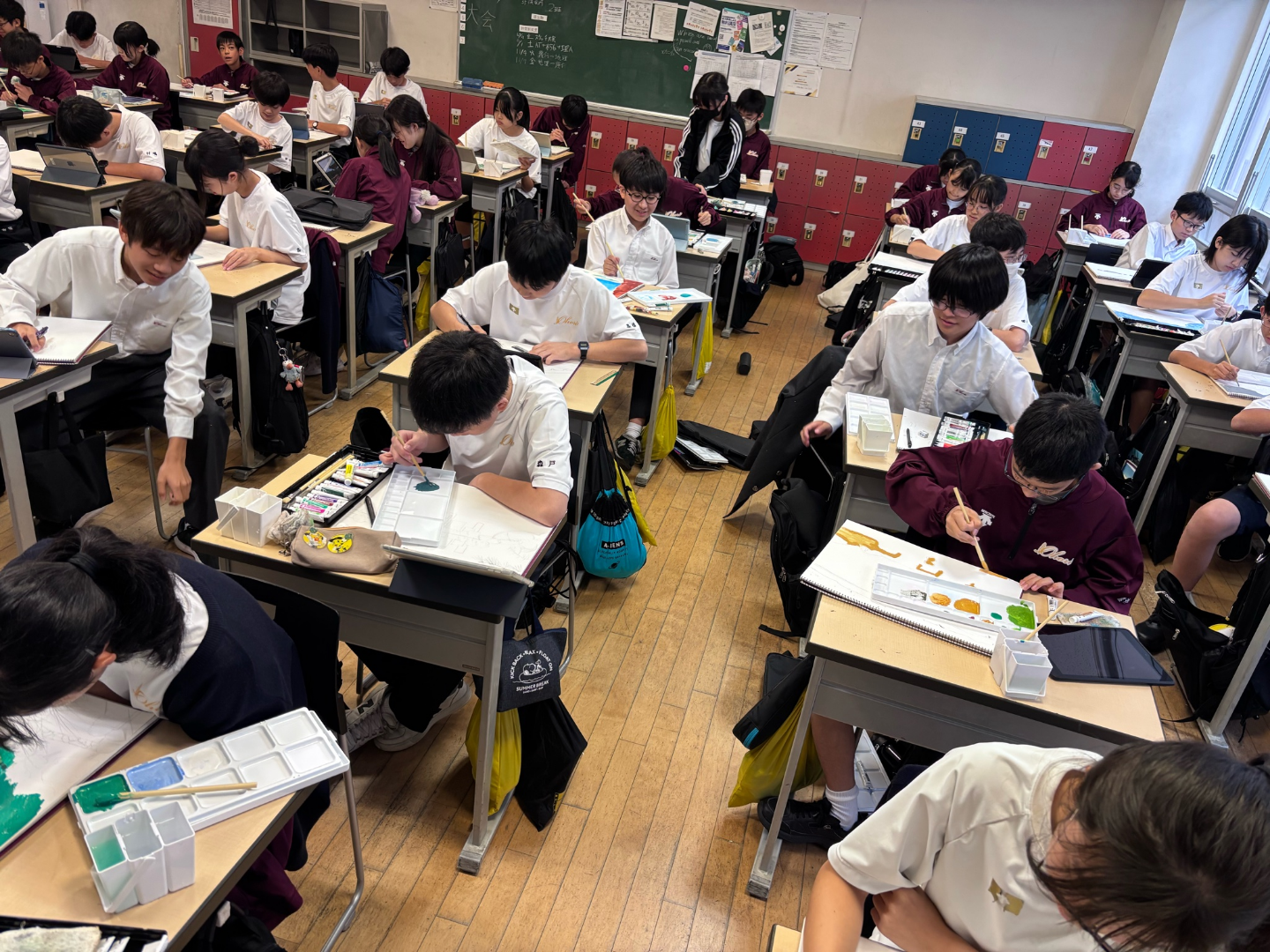 教室には黙々とスケッチブックに向かいあう生徒たちの静かな熱気が立ちこめました。見慣れた大濠公園ですが、水の色や緑の色など、いつもよりもじっくりと見つめることができました。