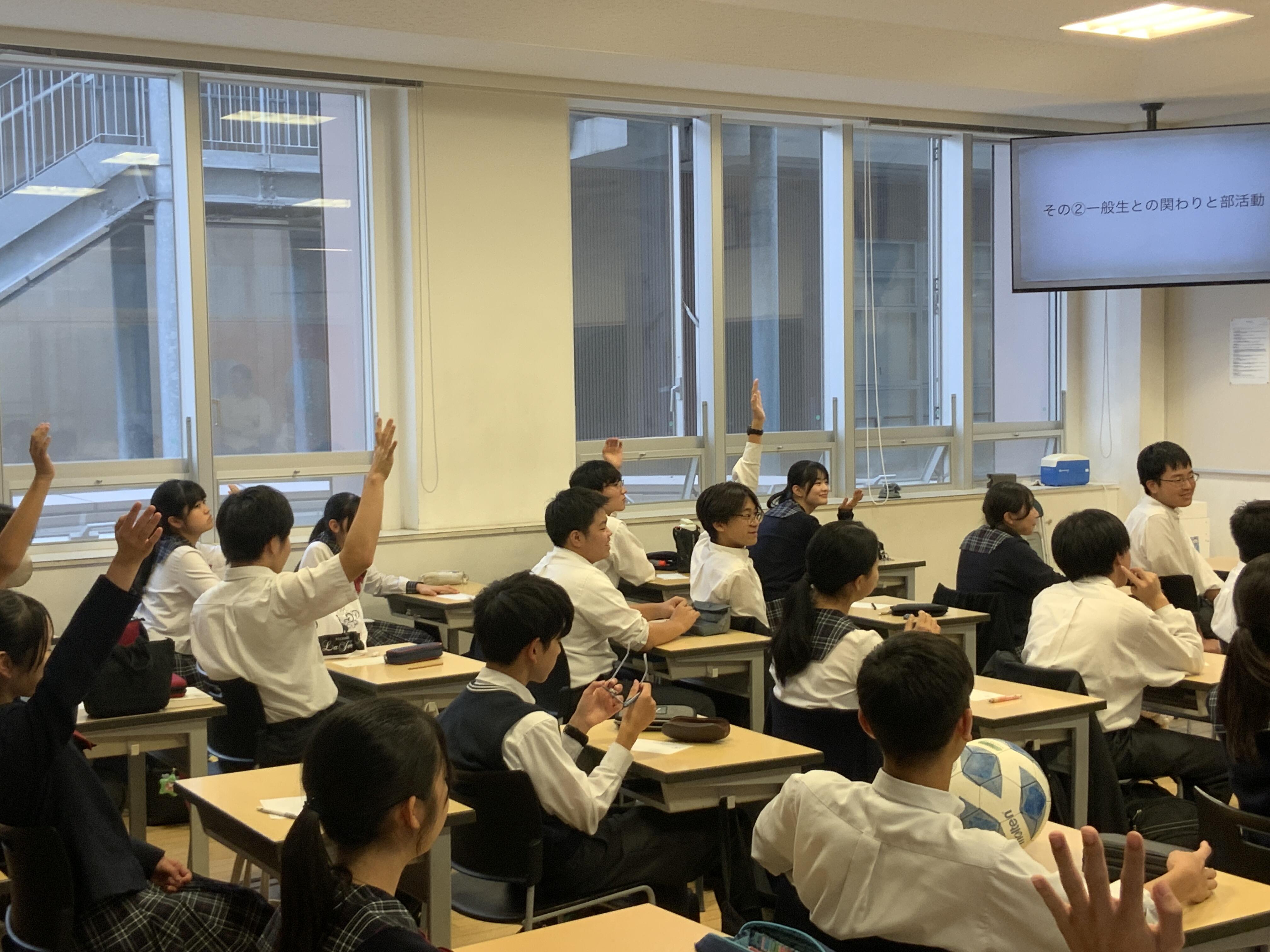 高校生たちの話の中には、部活、赤点、一般生徒の関わりなど、学校生活における様々な「ぶっちゃけ」話がありました。中学生たちは、現役大濠生という同じ目線でアドバイスをもらい、将来の高校生活を想像してワクワクしていたことでしょう。