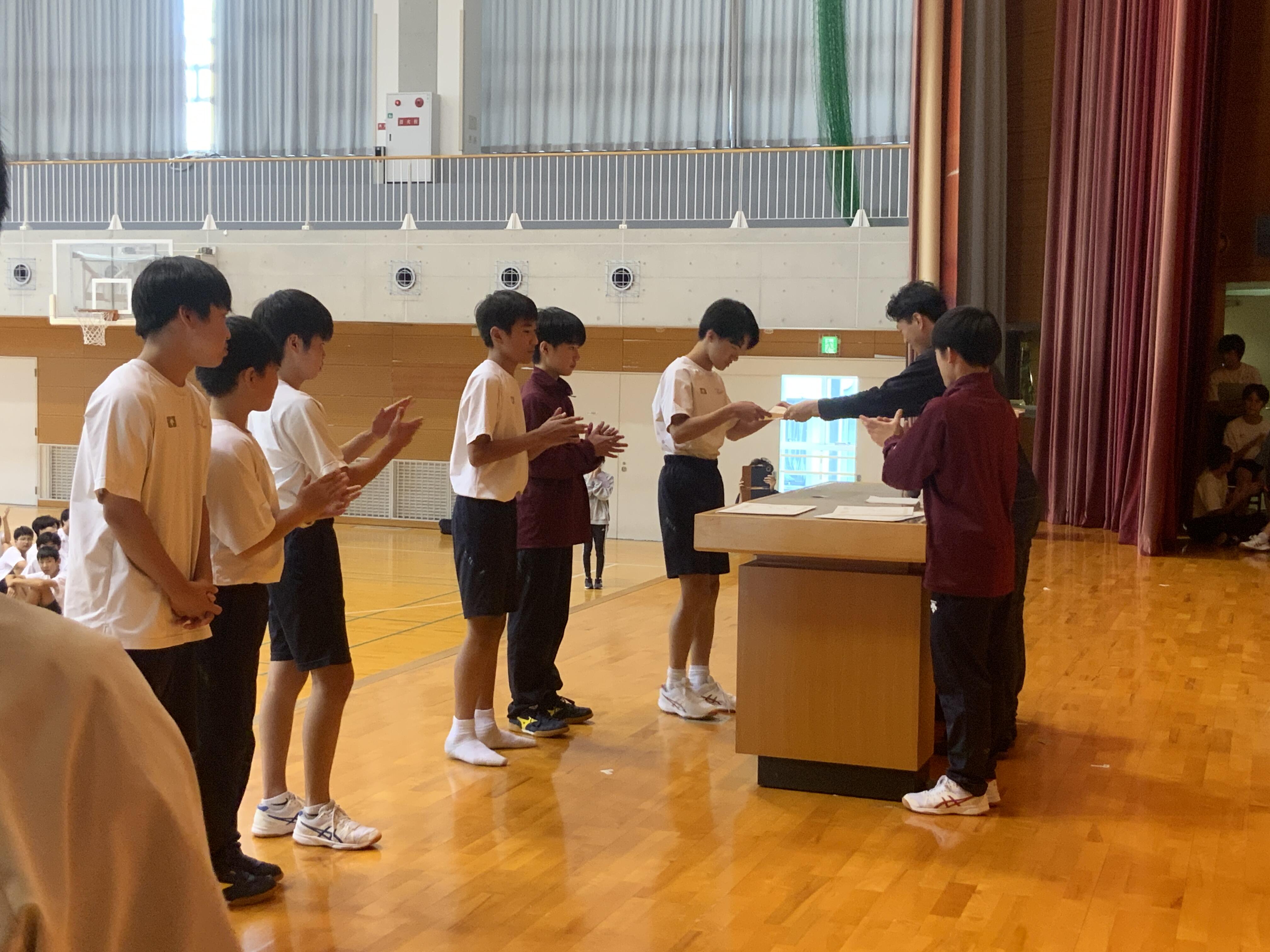各競技とも、生徒たちは正々堂々と勝負し、クラスの団結力を高めていました。全競技終了後、アリーナで表彰式が行われ、生徒たちはお互いの健闘をたたえ合っていました。