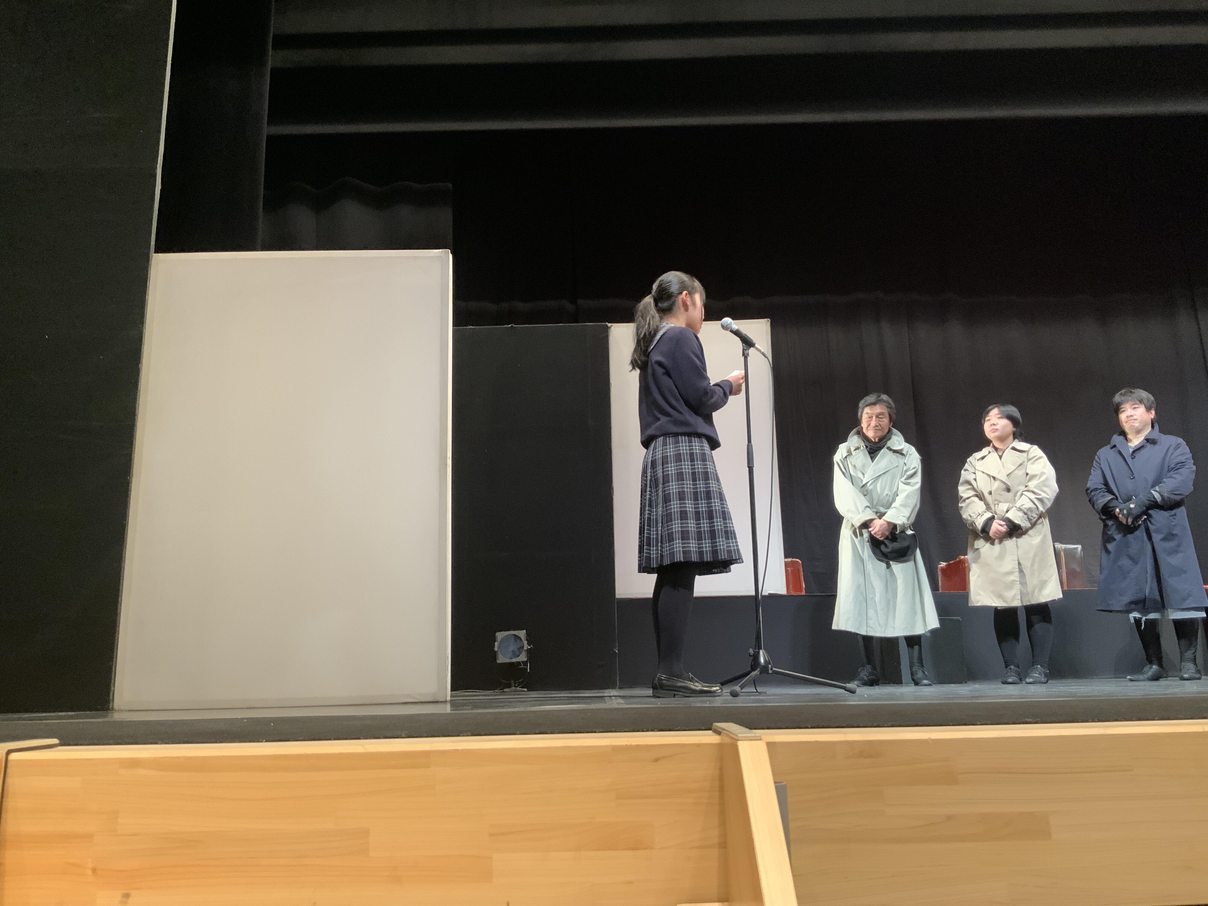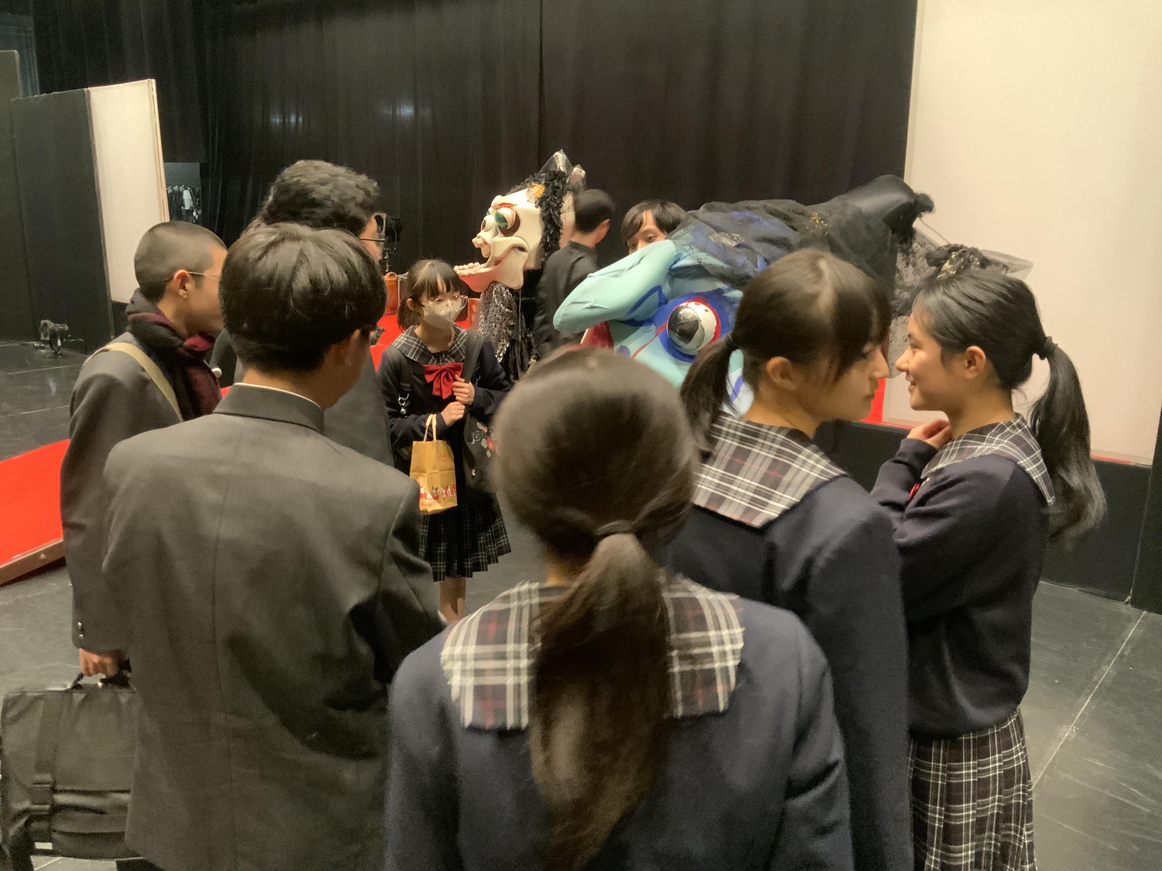 終演後、3年生の池田さんより劇団のみなさんへ謝辞が伝えられました。また、舞台見学の機会を設けていただき、演劇に興味のある生徒たちは目を輝かせていました。