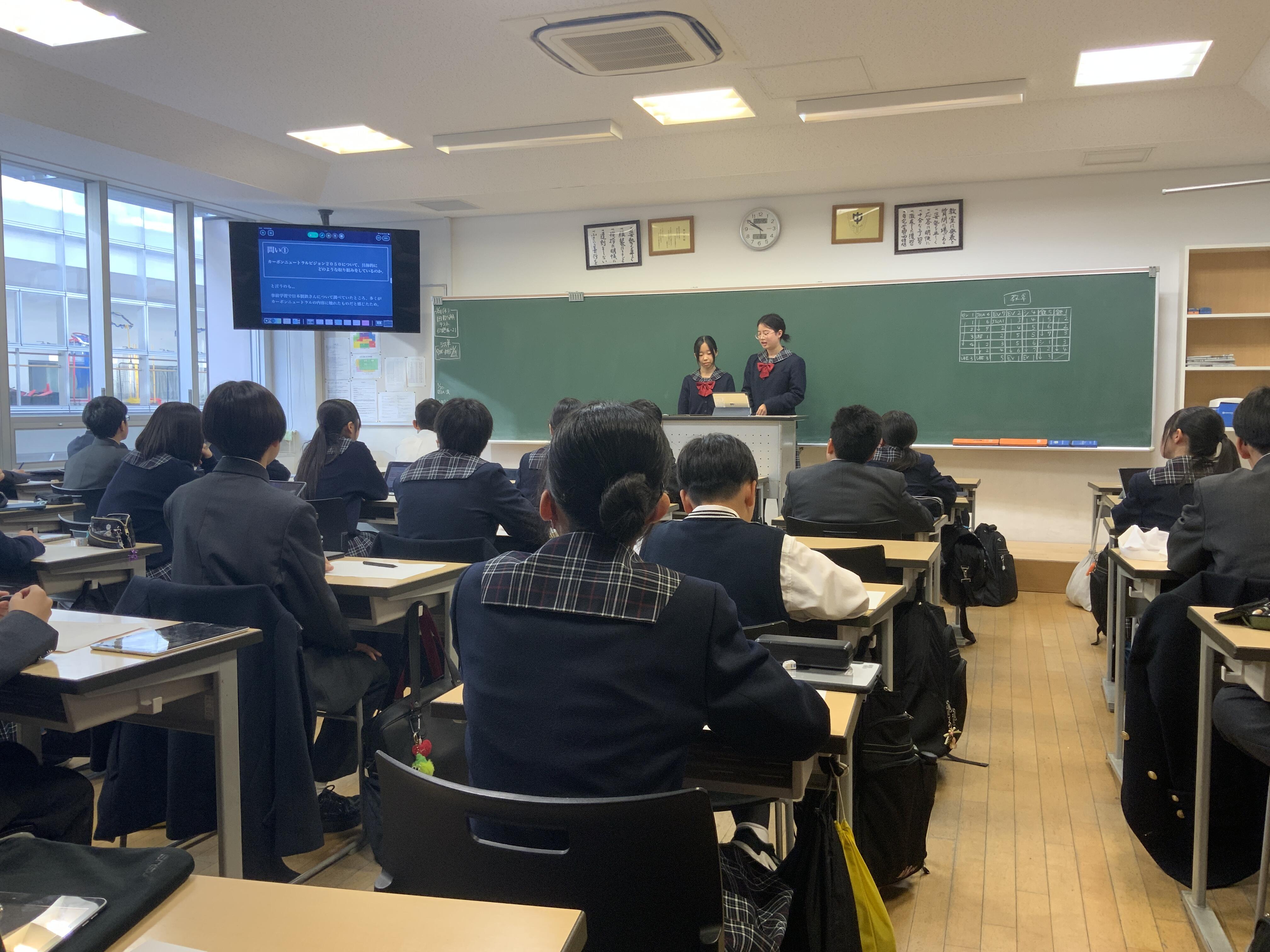 1月16日(金)の1~4限に、中学生は各学年でプレゼンテーションを行いました。