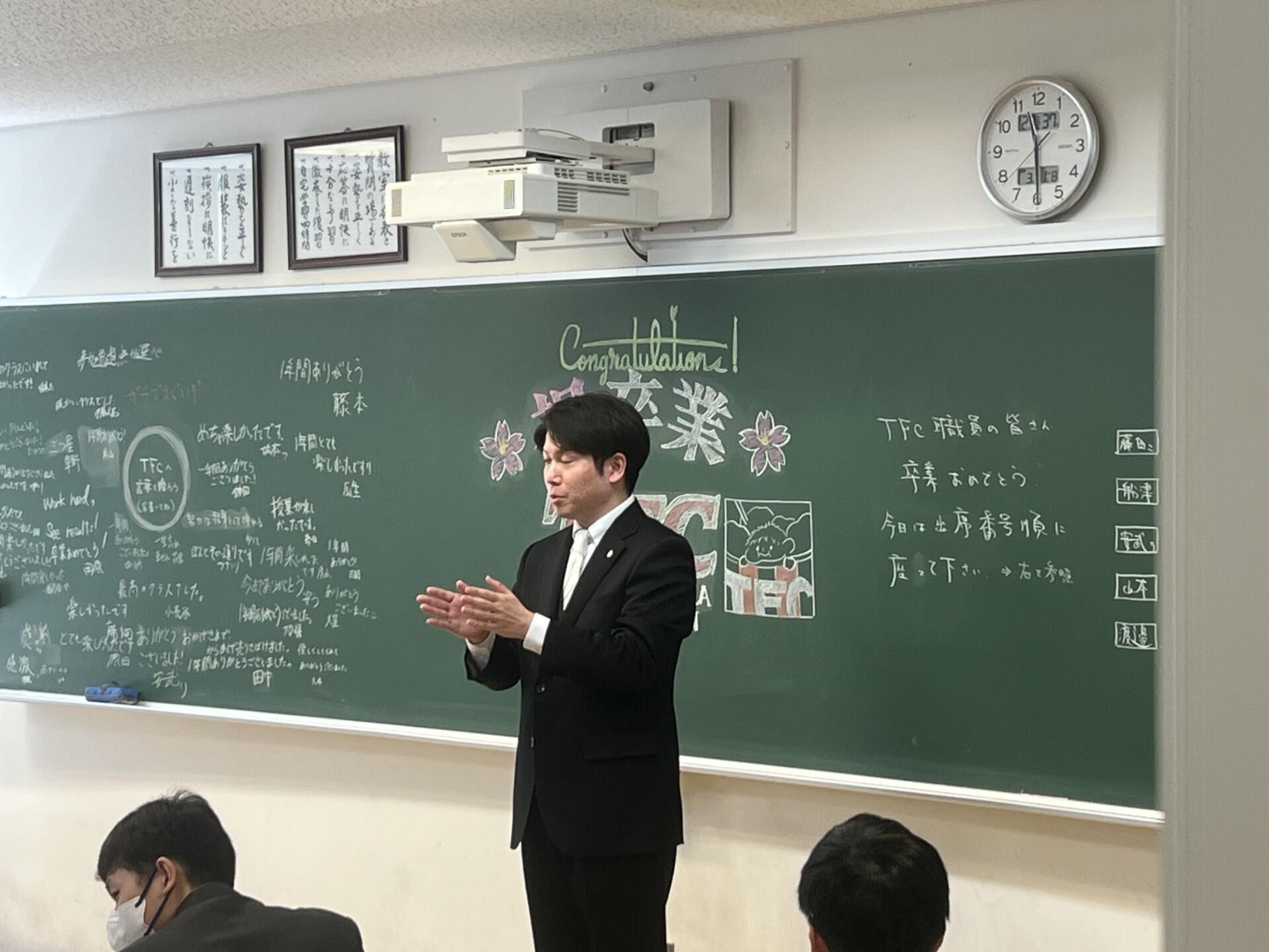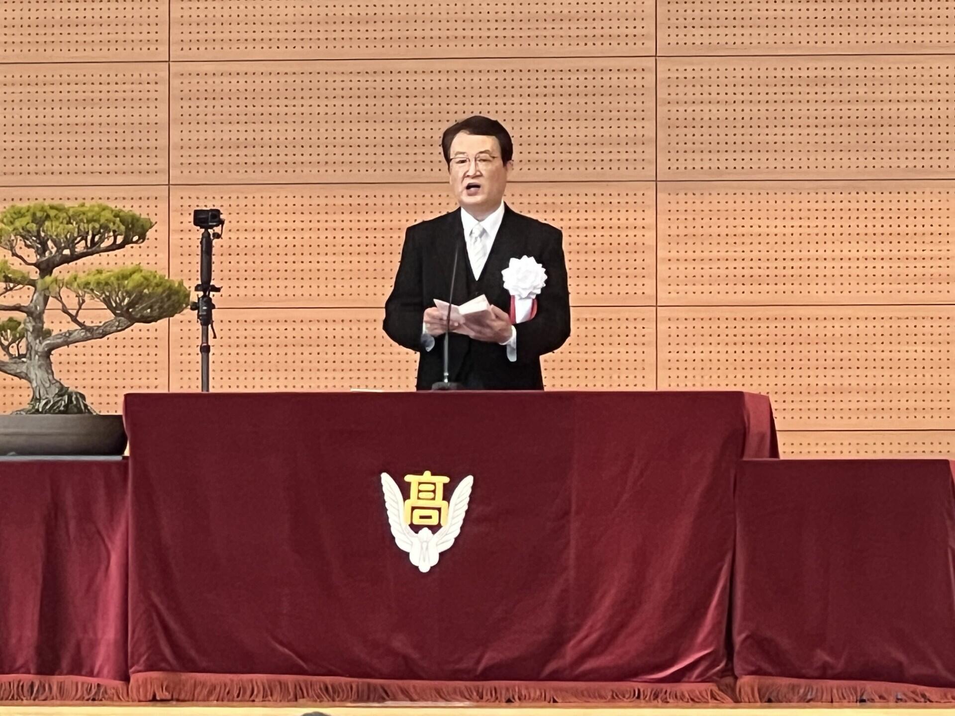 本校の校歌を懸命に歌う姿、そして堂々と行進する姿は非常に頼もしく、卒業生の皆さんが本日、笑顔でこの日を迎えられたことを、教職員一同、心より嬉しく思っております。