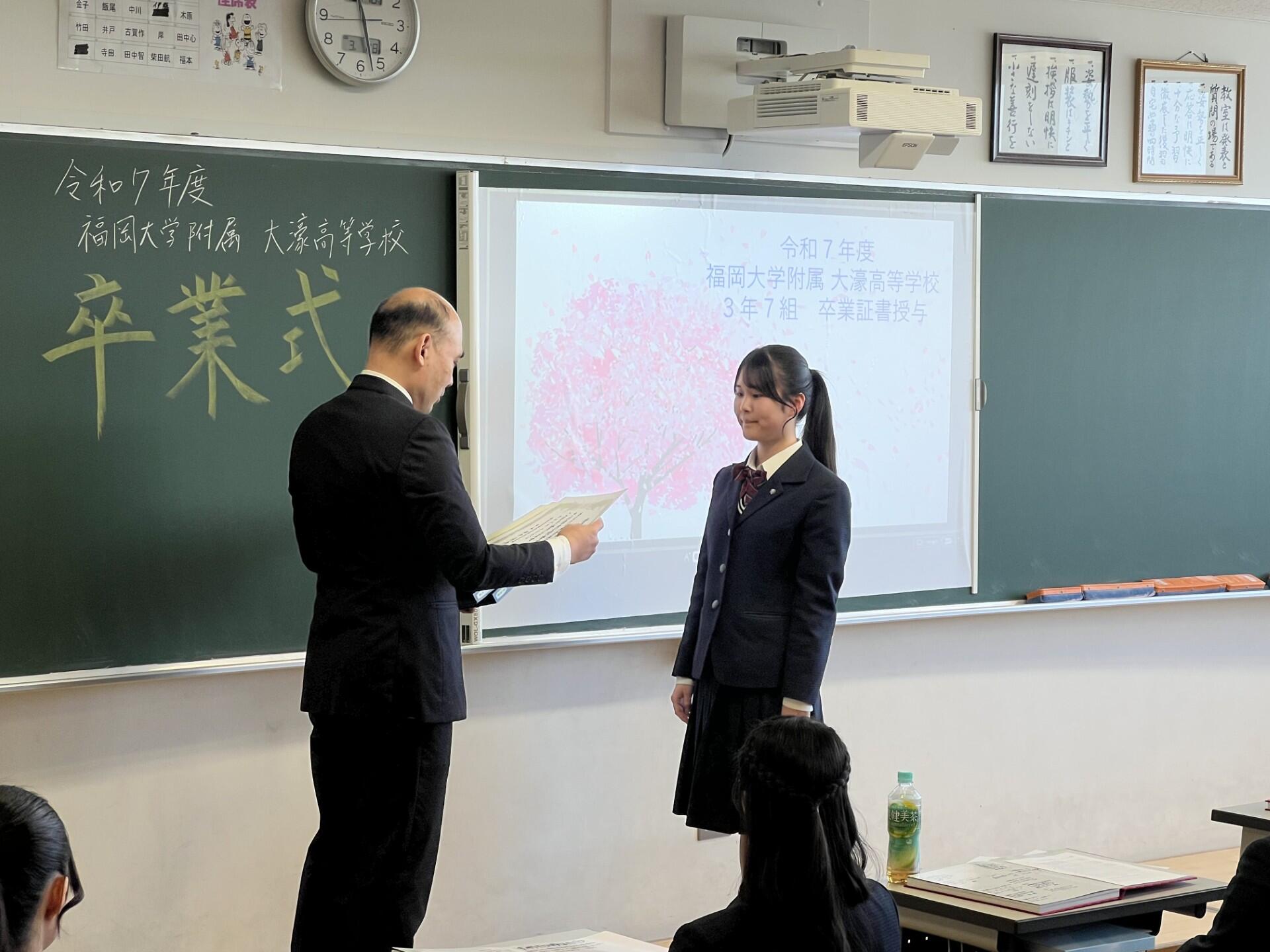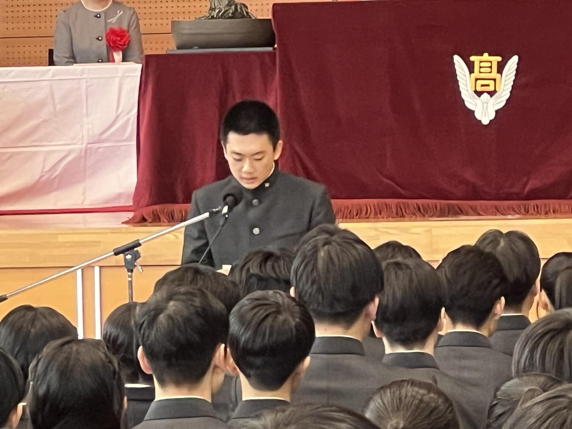 卒業生答辞では、大濠高校での三年間を振り返り、ささやかな日常の光景を慈しむ気持ちや、友人、先生、そして保護者の方々への感謝にあふれた言葉が述べられ、会場は深い感動に包まれました。