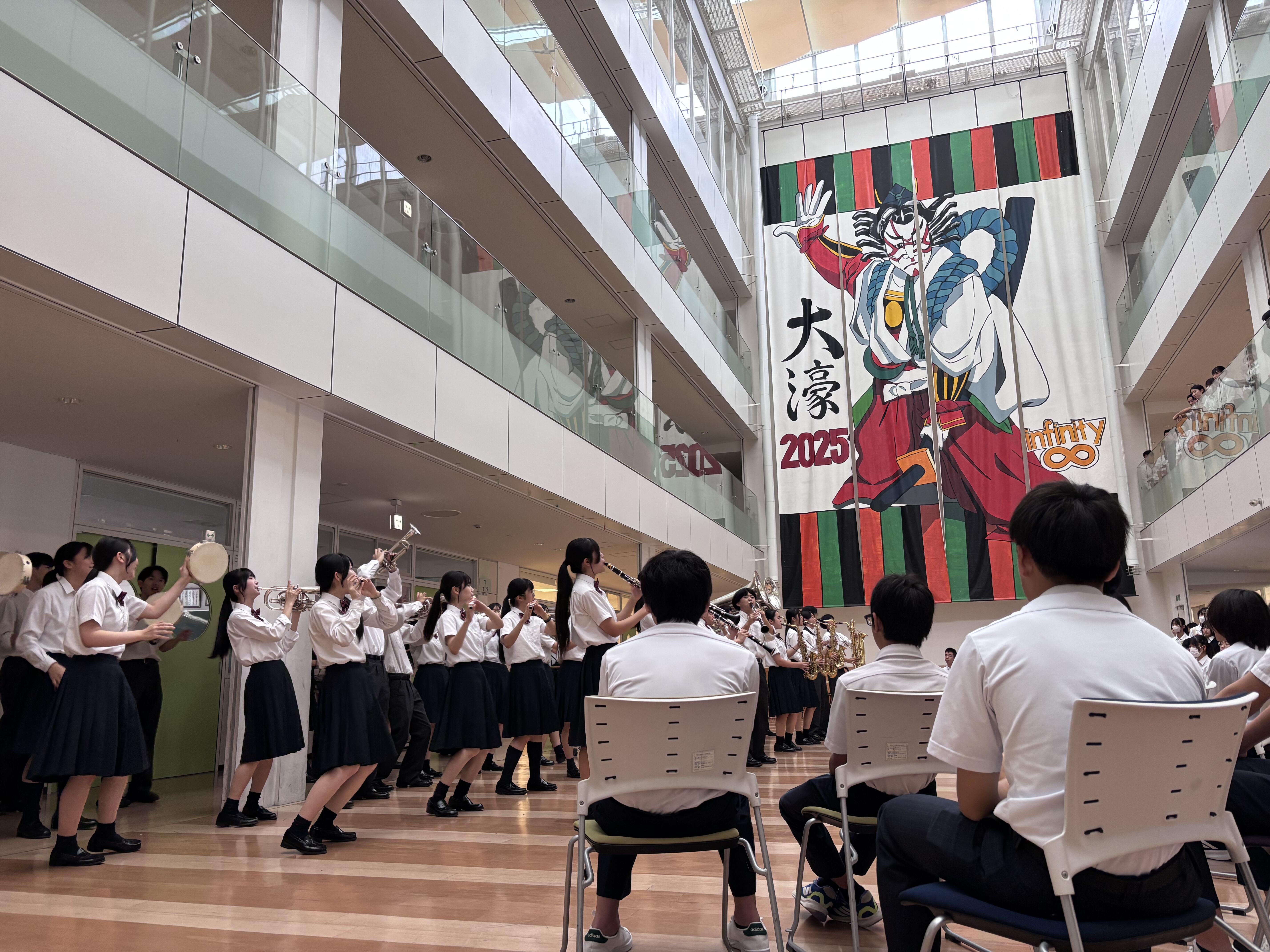 HOME スクールレポート 第2回オープンキャンパス スクールレポート 第2回オープンキャンパス 高校2025(令和7)年10月18日 本日、第2回オープンキャンパスが開催されました。小雨の中、約600名の中学生の皆さんが来校されました。吹奏楽部の歓迎演奏に始まり、入試問題解説授業、校舎見学、クラブ見学と、短時間ではありましたが、実際に本校の雰囲気を感じ取ることが出来たのではないでしょうか。参加された中学生の皆さん、受験勉強は大変だと思いますが、体調管理に注意しながら、元気に毎日を過ごして下さい。①吹奏楽部による歓迎演奏 ②書道部による書道パフォーマンス 戻る